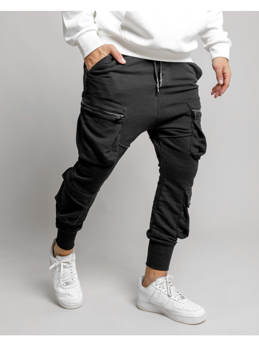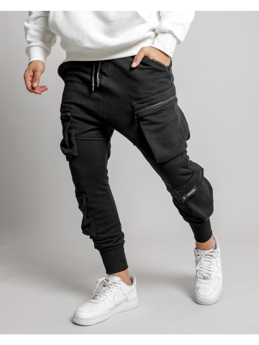 Pantaloni de trening cargo fit negri VOEN